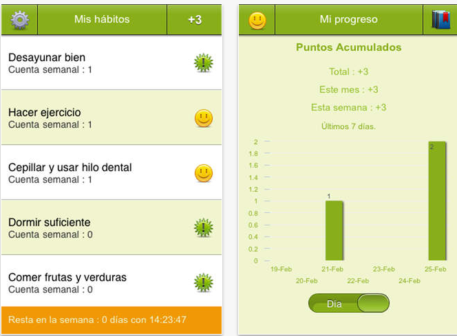 Esta aplicación está disponible en español y otros idiomas para iPhone, iPad y iPod. Tiene una interfaz muy sencilla e incluye gráficas para ir midiendo tus progresos de objetivos que también son básicos, como llevar una dieta sana o hacer ejercicio semanalmente. Cuesta 0,89 euros.